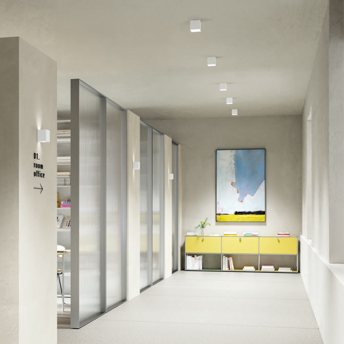 Eine essentielle Geometrie umhüllt eine raffinierte Leuchte, in der das Licht auf sekundären Oberflächen aufliegt, um reflektiert zu werden und zu leuchten. Maximale formale Einfachheit verbindet sich mit einer weichen, ergonomischen und dennoch funktionalen und effizienten Leistung, einer innovativen Interpretation eines traditionellen Themas.