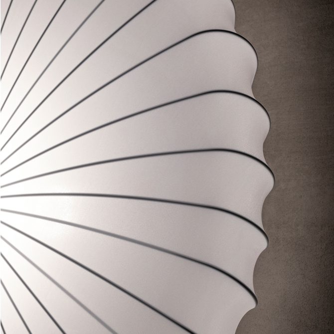 Es gibt Designleuchten, die trotz ihrer Entstehung vor vielen Jahren immer aktuell bleiben: schön und zeitgemäß. Muse ist eine davon, zeitlos, konzipiert als architektonisches Element, das Wände und Decken aufwertet, dessen Metallstruktur – die an die Blütenkrone einer Blume erinnert – mit einem elastischen, austauschbaren Stoff umhüllt ist.