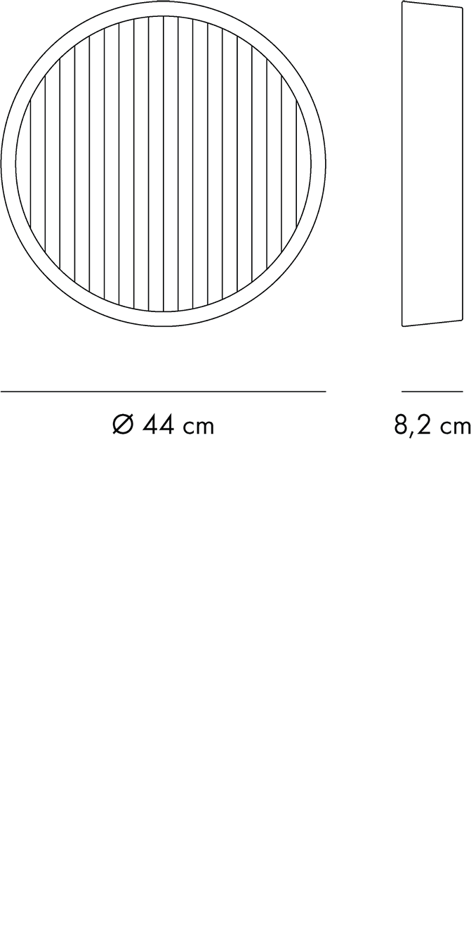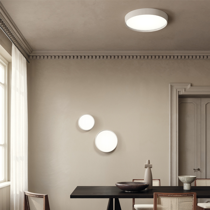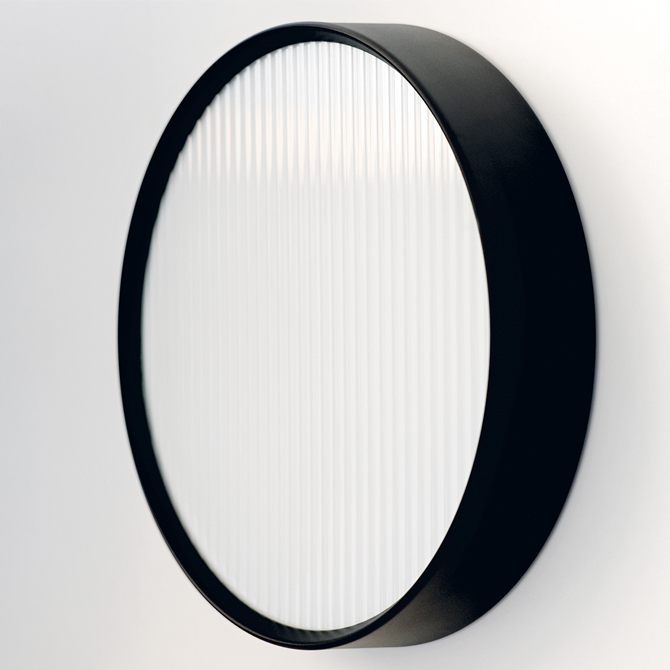 Eine Lichtscheibe, eine reine Form, die sich leicht in den davor liegenden Raum erstreckt und in deren Frontglas ein Geheimnis verborgen ist, das das Licht je nach Blickwinkel lebendig und vibrierend erscheinen lässt. Ein essentielles Objekt, perfekt funktional und gleichzeitig dynamisch, bereichert durch die große Liebe zum Detail, mit der es entworfen wurde.