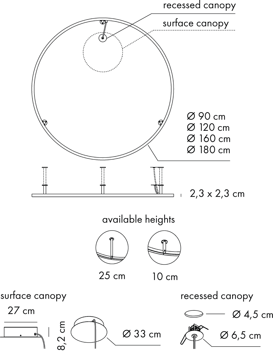 | Ø180cm | Rosone plafone 153W Rosone incasso 123W 10315lm |
