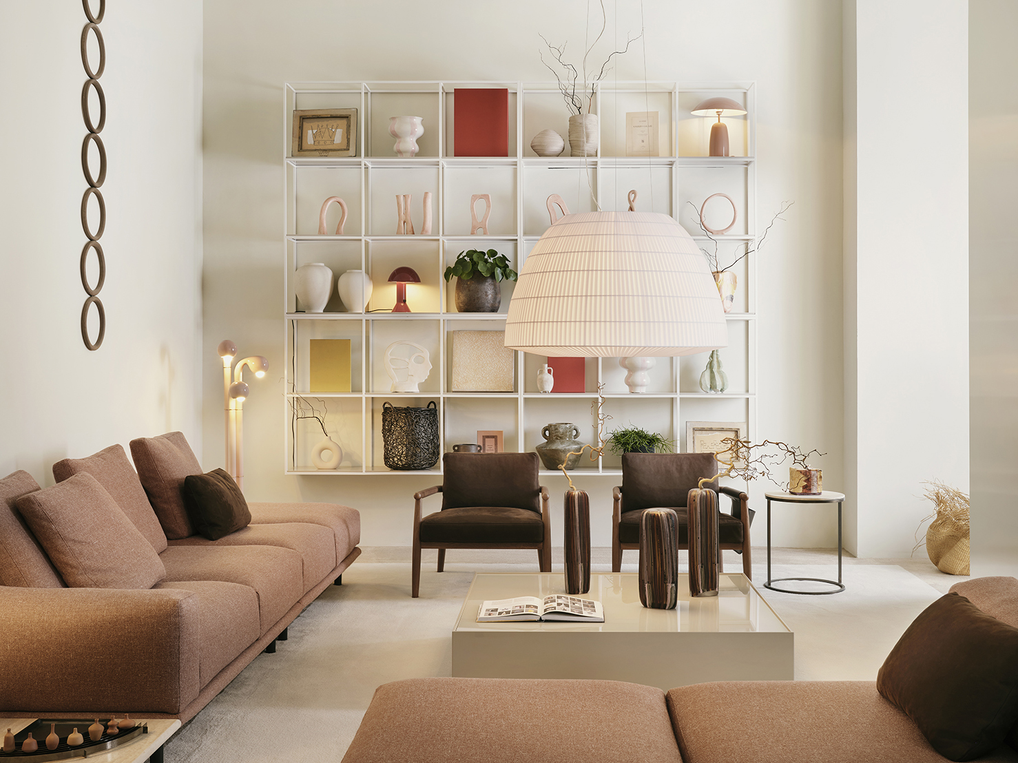 Unsere ikonische Bell-Lampe war eine der Axolight-Kollektionen, die Andrea Parisio auswählte, um den neuen MERIDIANI-Store in der Via Manzoni in Mailand zu beleuchten. Mit ihrem klassischen, zugleich zeitgenössischen Charme, dem dezenten, aber angenehmen Licht und der hohen akustischen Leistung war Bell die perfekte Lösung für das von Zen inspirierte Innendesign des Stores.