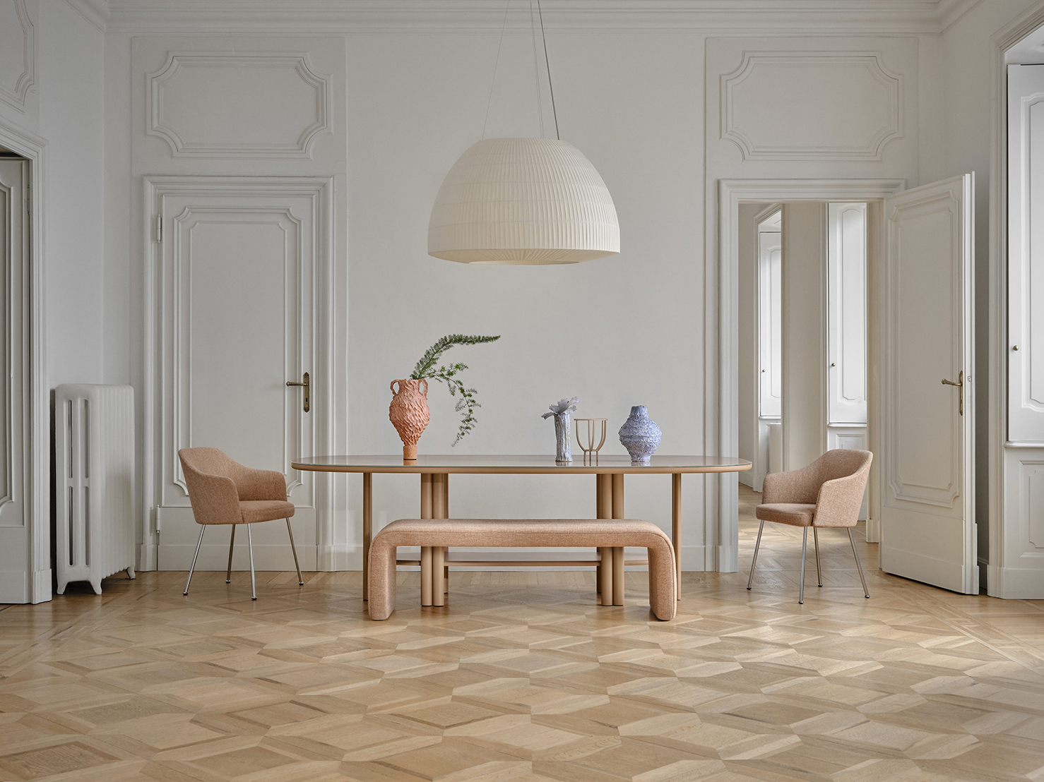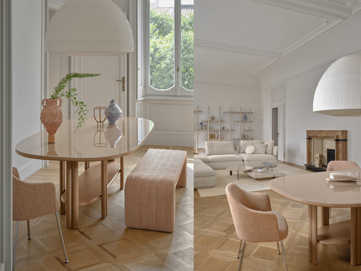 Die Bell-Hängelampe steht im neuen Saba-Katalog im Mittelpunkt und überzeugt durch ihre Fähigkeit, jedem Raum stilvolle Akzente zu verleihen. Ihre sanften Linien und der edle Pongee-Stoff schaffen ein zeitloses Design – elegant, aber unaufdringlich – das jeden Raum perfekt ergänzt. Das warme, einhüllende Licht verwandelt jede Umgebung in eine einladende und elegante Oase.