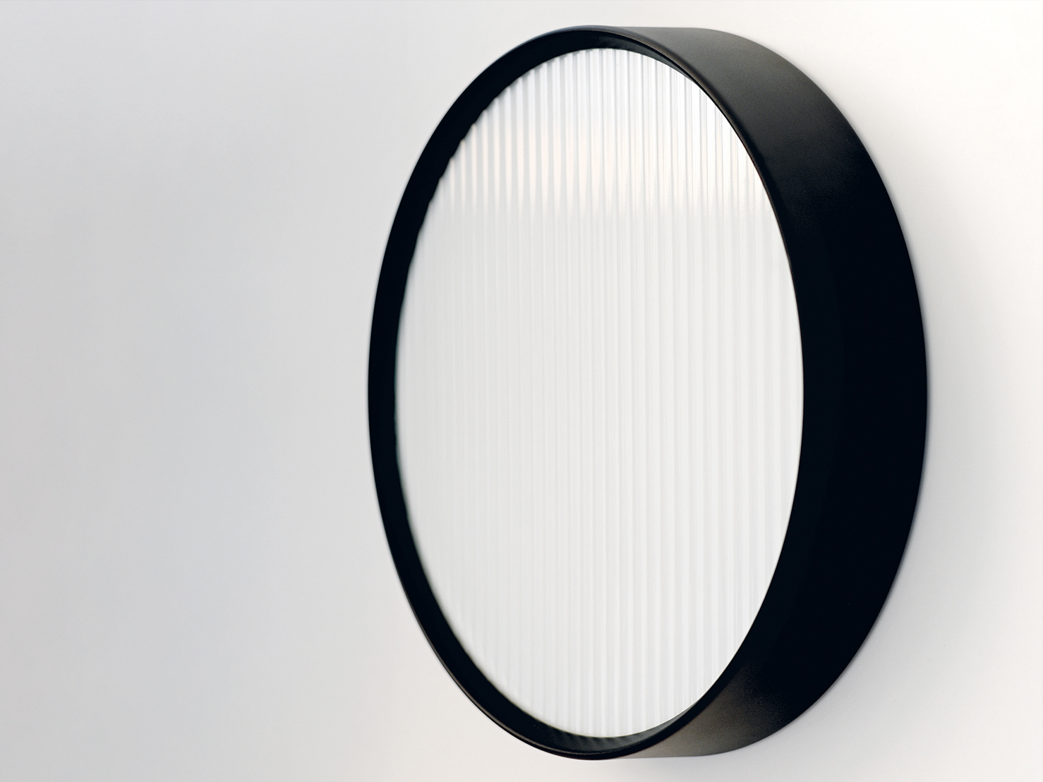 A disc of light, a pure form subtly extending forward, conceals a secret within its finely crafted glass-bringing light to life with shifting vibrancy as the viewing angle changes. Both essential and dynamic, it is a perfectly functional object, elevated by meticulous attention to detail.