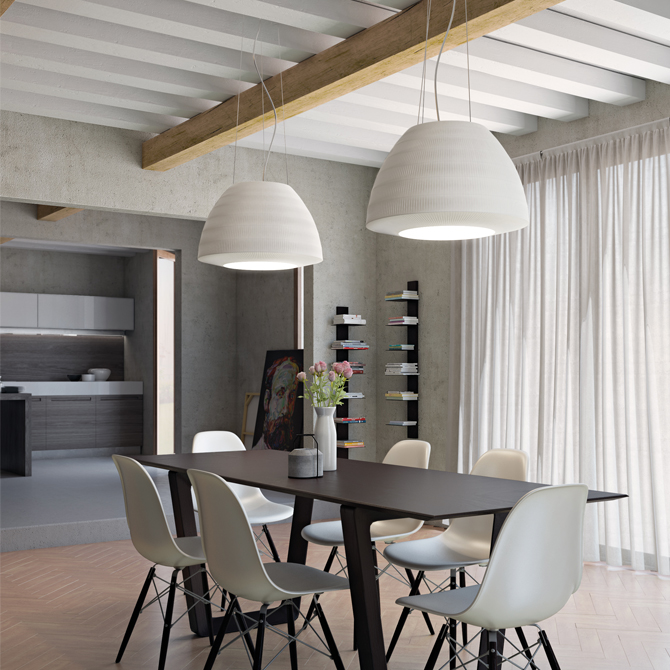 Les lignes douces et le tissu pongé raffiné confèrent à Bell un design intemporel, qui se distingue par son élégance discrète et sa capacité à mettre en valeur tout type d’environnement. Même dans ses plus grandes dimensions, Bell conserve une surprenante légèreté visuelle, s’intégrant avec élégance sans alourdir l’espace. En effet, sa présence enrichit l’environnement d’une lumière diffuse et enveloppante. Grâce aux nombreuses variations de couleurs et de tailles, Bell s’adapte à différents styles et projets, offrant une personnalisation complète. La collection comprend des suspensions, des appliques, des plafonniers et des lampadaires, parfaits pour les pièces de toutes dimensions.