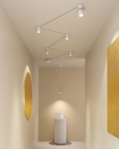 Con Poses il progettista può creare innumerevoli forme geometriche piane diffondendo la luce negli spazi interni attraverso l’uso di linee rette e punti di giunzione. Gli elementi base che compongono ciascuna configurazione sono i moduli lineari ruotabili di 359°, che vengono connesse ai satelliti circolari dotati di una copertura magnetica. Il sistema è disponibile nella […]
